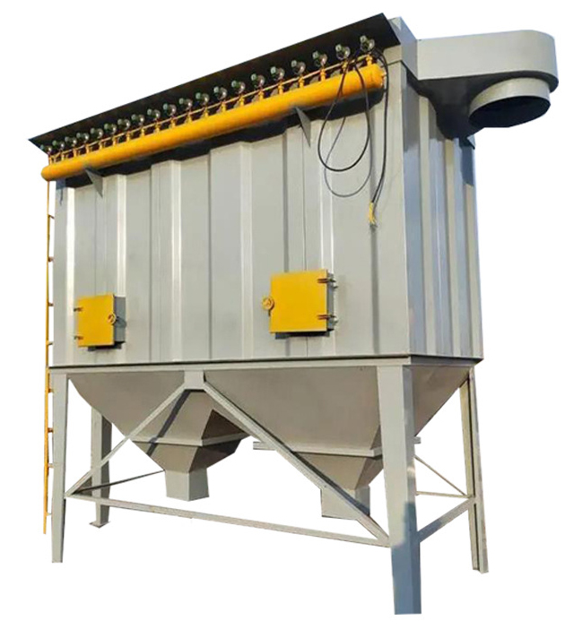 除尘器的工作原理如下:含尘气体由下部敞开式法兰进入过滤室,较粗颗粒直接落入灰仓,含尘气体经滤袋过滤,粉尘阻留于袋表,净气经袋口到净气室,由风机排入大气。当滤袋表面的粉尘不断增加,程控仪开始工作,逐个开启脉冲阀,使压缩空气通过喷口对滤袋进行喷吹清灰,使滤袋突然膨胀,在反向气流的作用下,赋予袋表的粉尘迅速脱离滤袋落入灰仓,粉尘由卸灰阀排出。